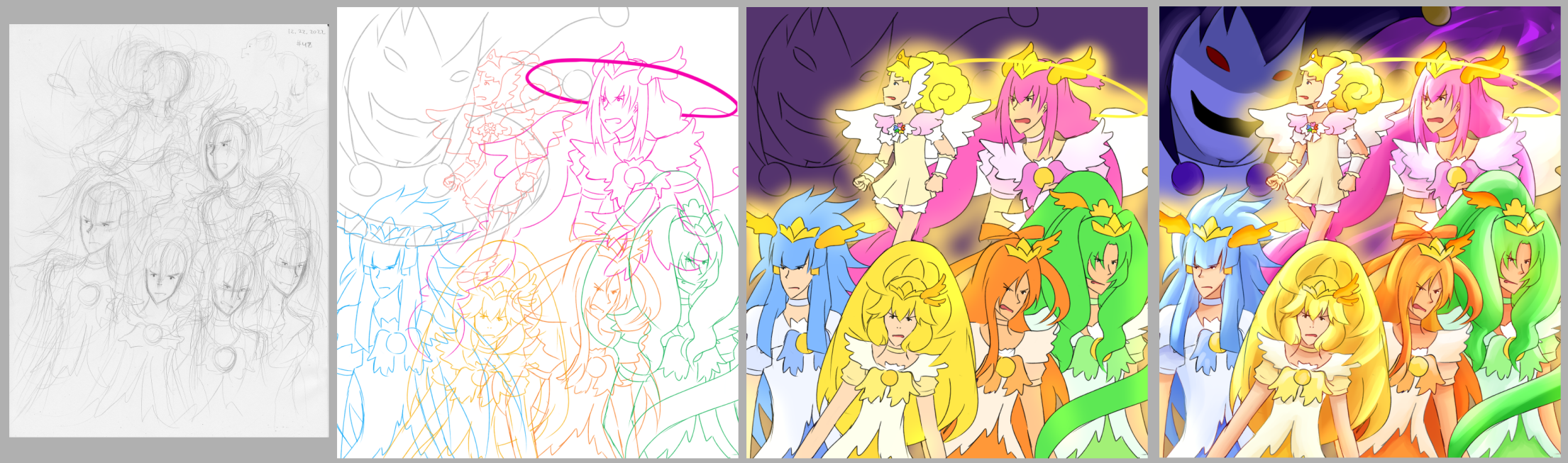 Don't know why I originally drew Candy with her back to the camera. Also, only Happy has the halo cuz there was no space for everyone else to have them too.