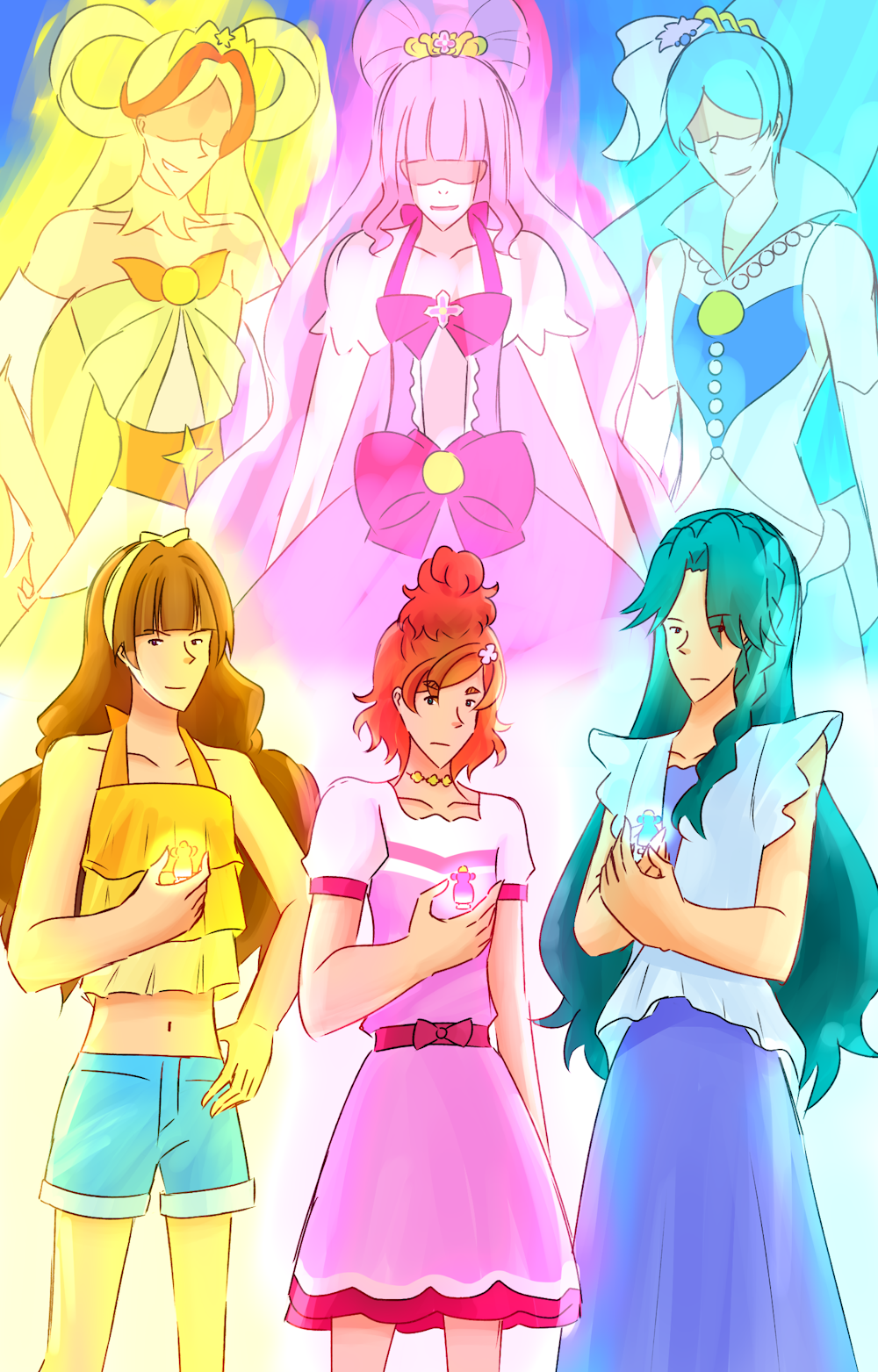 Went for a kind of "stands" vibe a la that one episode of Gintama where they were referencing JoJo's Bizarre Adventure. Whenever people draw this episode, they tend to reference Minami's fear of ghosts so I didn't want to do that again ^^;;; I had a more extreme perspective in mind but chickened out 😭 why is art so difficult