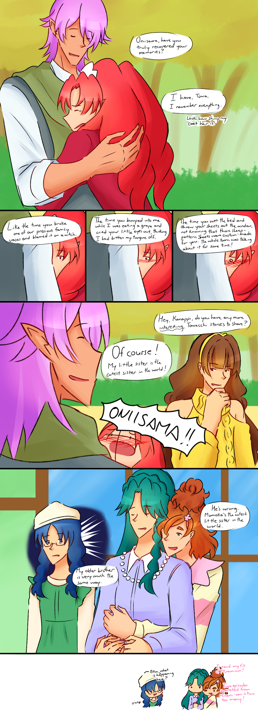 SO! I took the opportunity to make Towa and Kanata seem like real siblings. First story is clearly an Umineko reference lol. The second story is one pulled from real life, except *I* was the one who bumped into my (younger) brother and cried because I thought he bit off his tongue >>;;;; And when I was coming up with the third story, I remembered that Towa's animal is a sheep in that one line of merch! It's fate!!